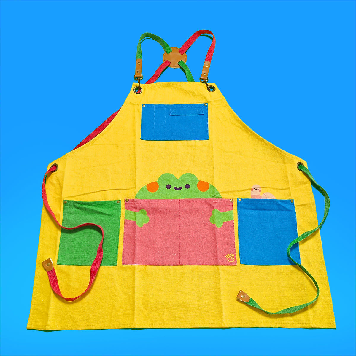 This apron can go in the washing machine and dryer without shrinking, just make sure to remove the straps beforehand so they don't get all tangled up!